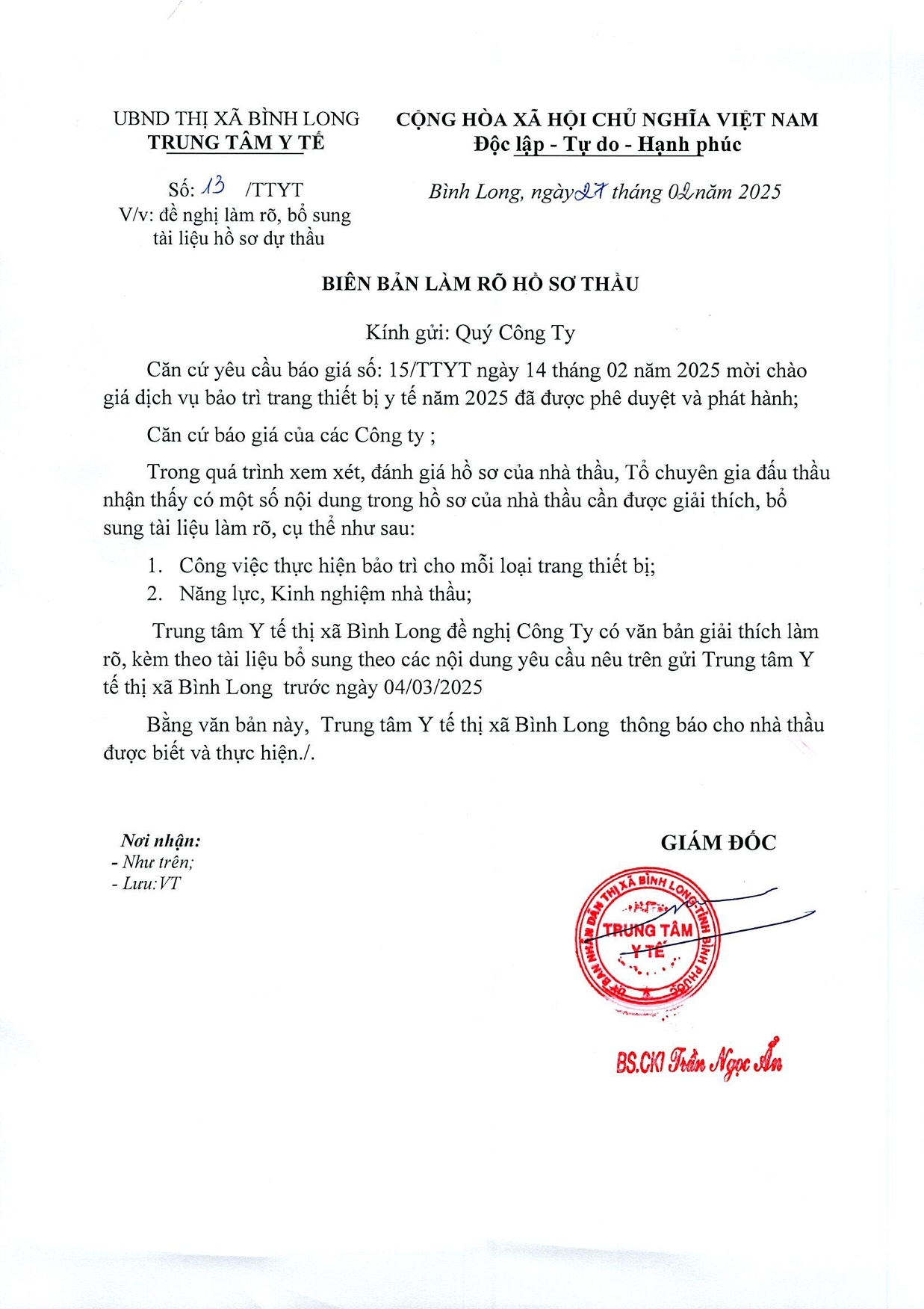 Văn bản Thông báo: Đệ nghị làm rõ bổ sung tài liệu hồ sơ dự thầu Ngày đăng 15 Tháng 5, 202515 Tháng 5, 2025 Bởi admin 15 Th5 Thông báo: Đệ nghị làm rõ bổ sung tài liệu hồ sơ dự thầu admin LỄ CÔNG BỐ QUYẾT ĐỊNH BỔ NHIỆM LẠI ĐỒNG CHÍ TRẦN NGỌC ẨN GIỮ CHỨC VỤ GIÁM ĐỐC TRUNG TÂM Y TẾ THỊ XÃ BÌNH LONG CHẮP CÁNH ƯỚC MƠ – KỲ 114